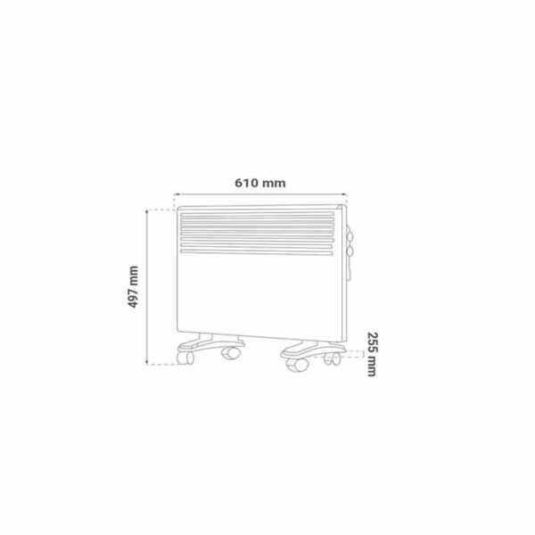 Konvektorska grijalica 1500W električna dolazi sa kompletnim priborom za samostojeću montažu (nosači i točkići), kao i priborom za zidnu montažu, omogućavajući maksimalnu fleksibilnost pri instalaciji.